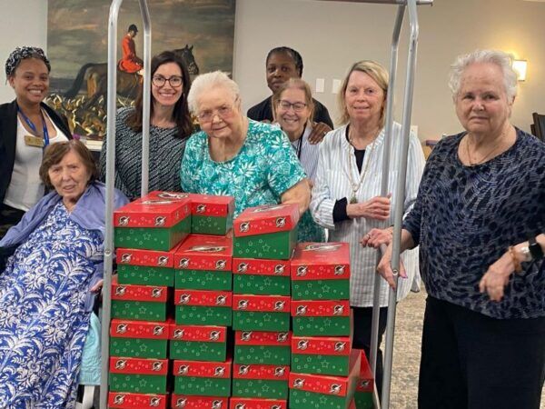 This was the third consecutive year the residents have participated in the program, which has a history of being especially meaningful to Leah. “Growing up, I would help my grandmother put shoeboxes together. As a young adult, I hosted shoebox packing parties at my home. I even volunteered at the distribution center in Charlotte. This program is near and dear to my heart,” said Leah. Furthermore, Beverly Anderson, concierge at Kempton of Charleston, and her husband Randy, who serves as pastor there, have participated in the program through Vertical Church for 15 years.